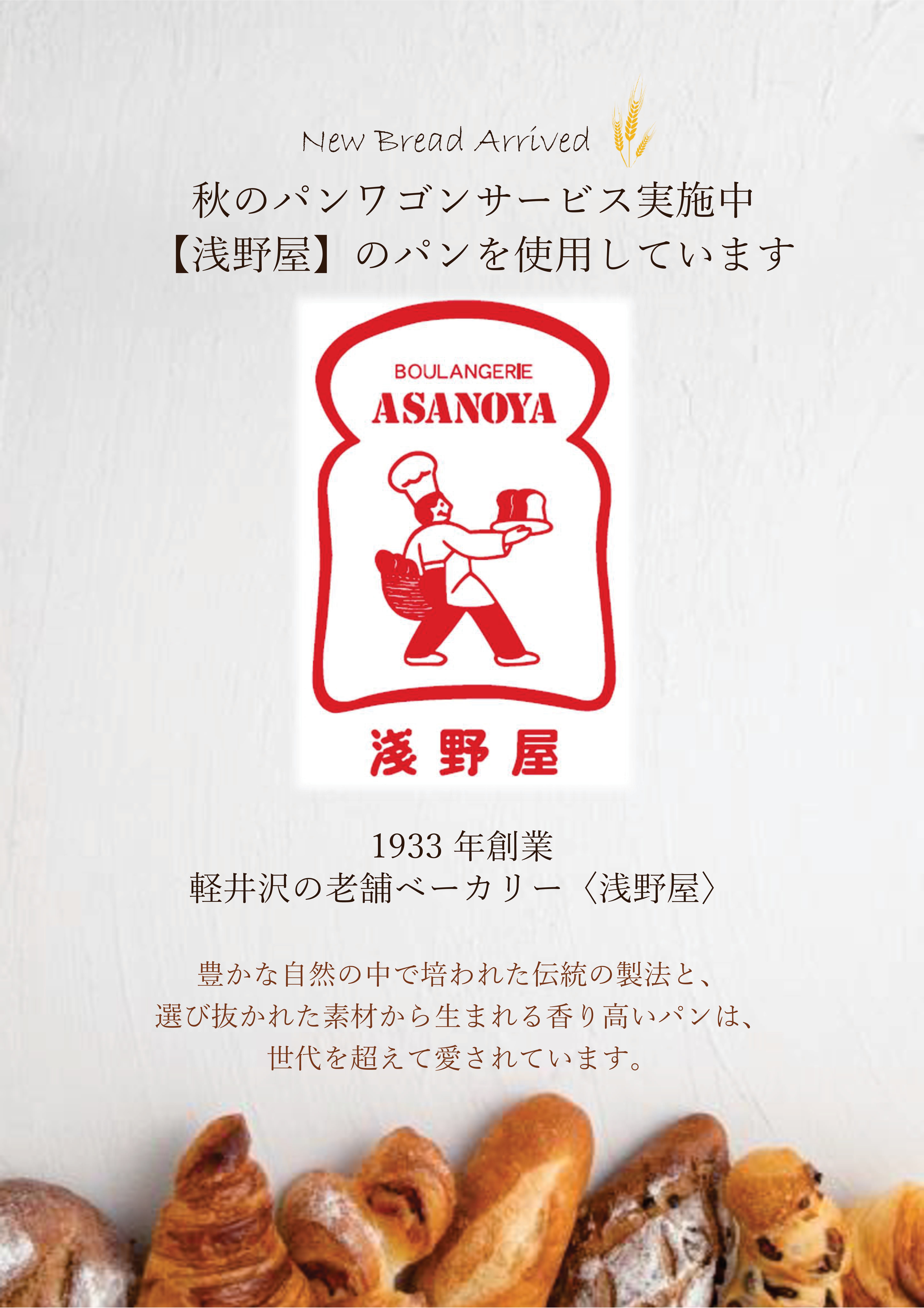 この度、フランス料理レストラン「ベルビュー」のランチ・ディナーにてご提供しておりますパンを、**1933年創業の軽井沢の老舗ベーカリー『浅野屋』さん**のパンにいたしました。
