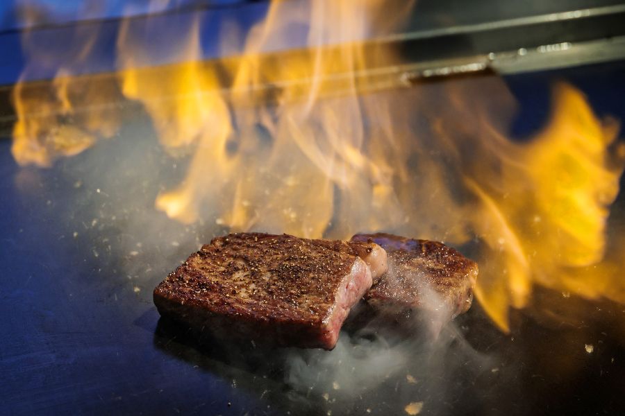 大きな窓から降り注ぐ陽光と、移り変わる四季の情景を眺めながら、目の前の鉄板で焼き上げていく、出来立てのステーキをお楽しみください。